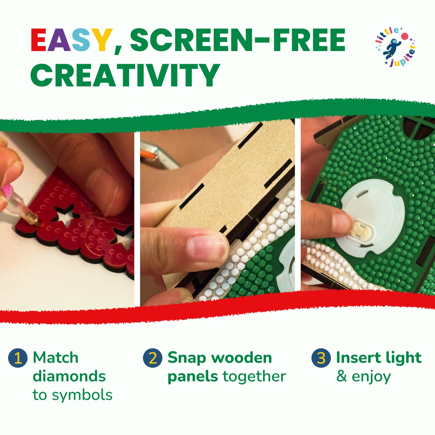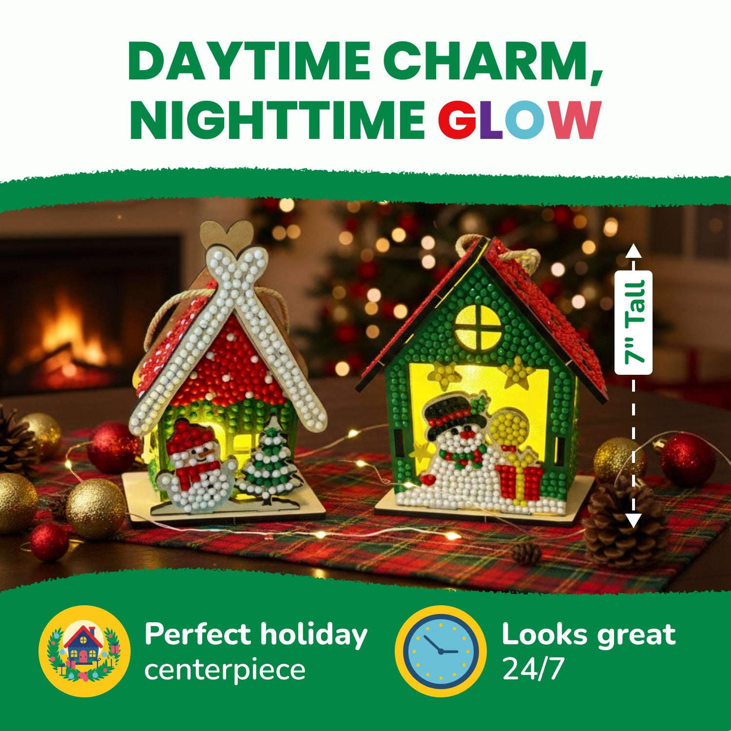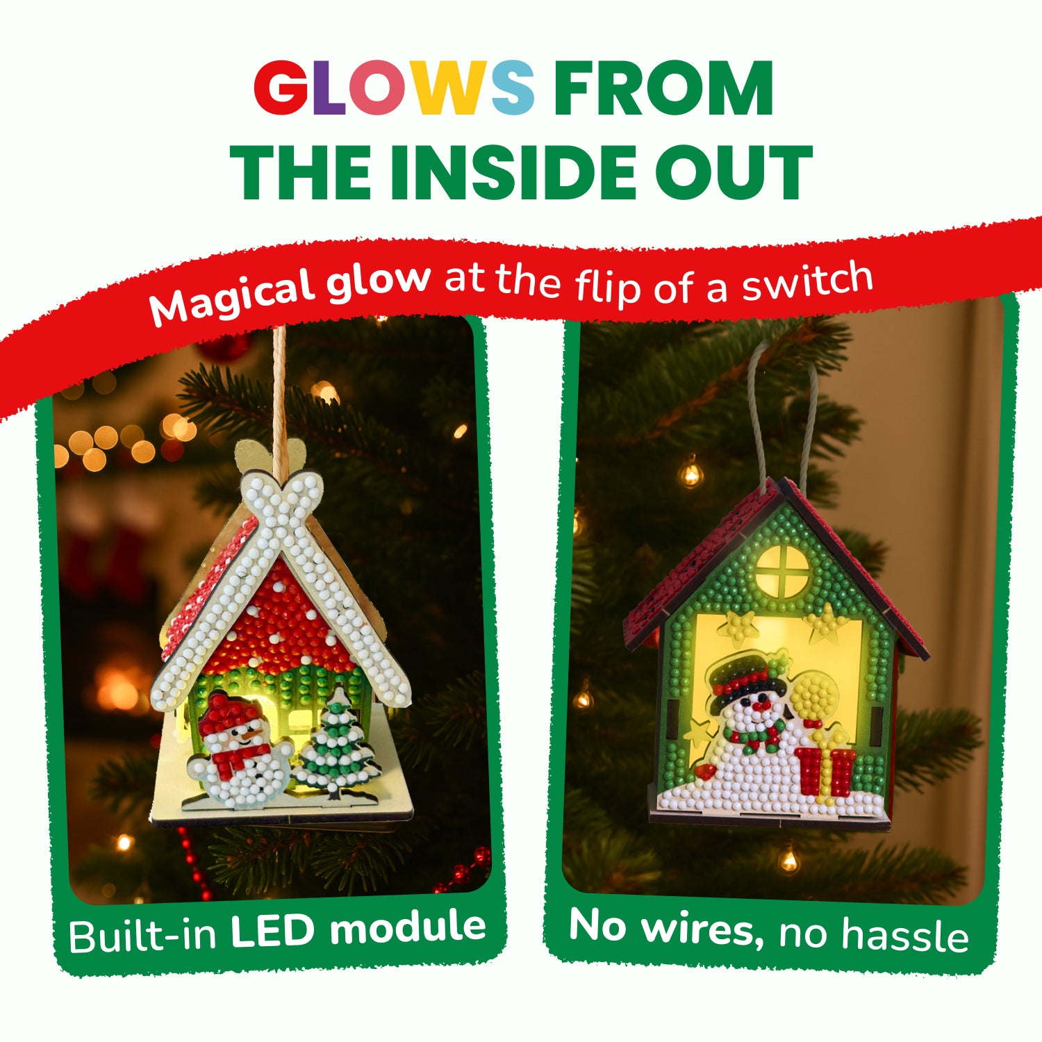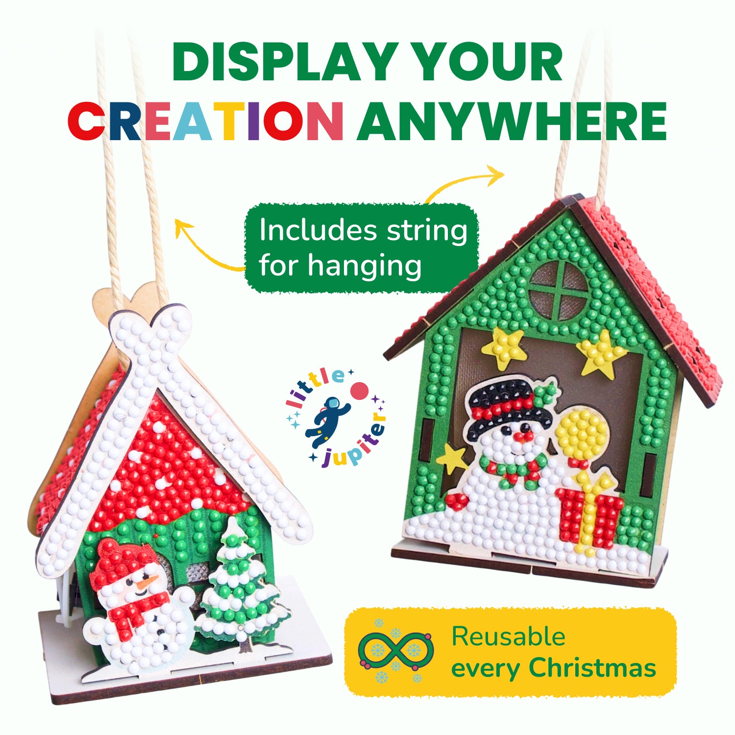 - Ultimate Christmas Crafts Kits: An awesome diamond art kit for children that allows you to build two light up Christmas themed ornament houses. This non-mess craft Includes all pieces, lights, strings, and batteries.