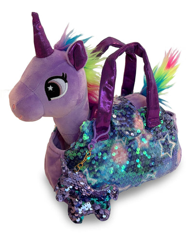 Little Jupiter Pet Plush Set with Bag - Purple/Rainbow Unicorn
