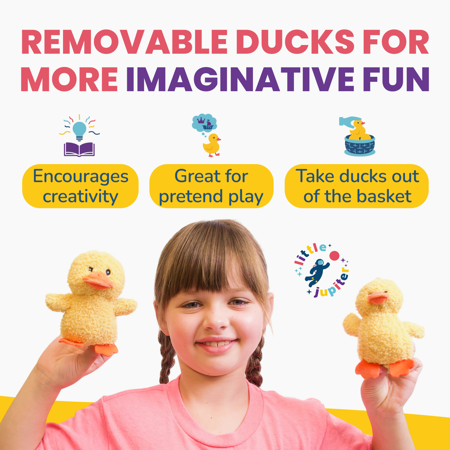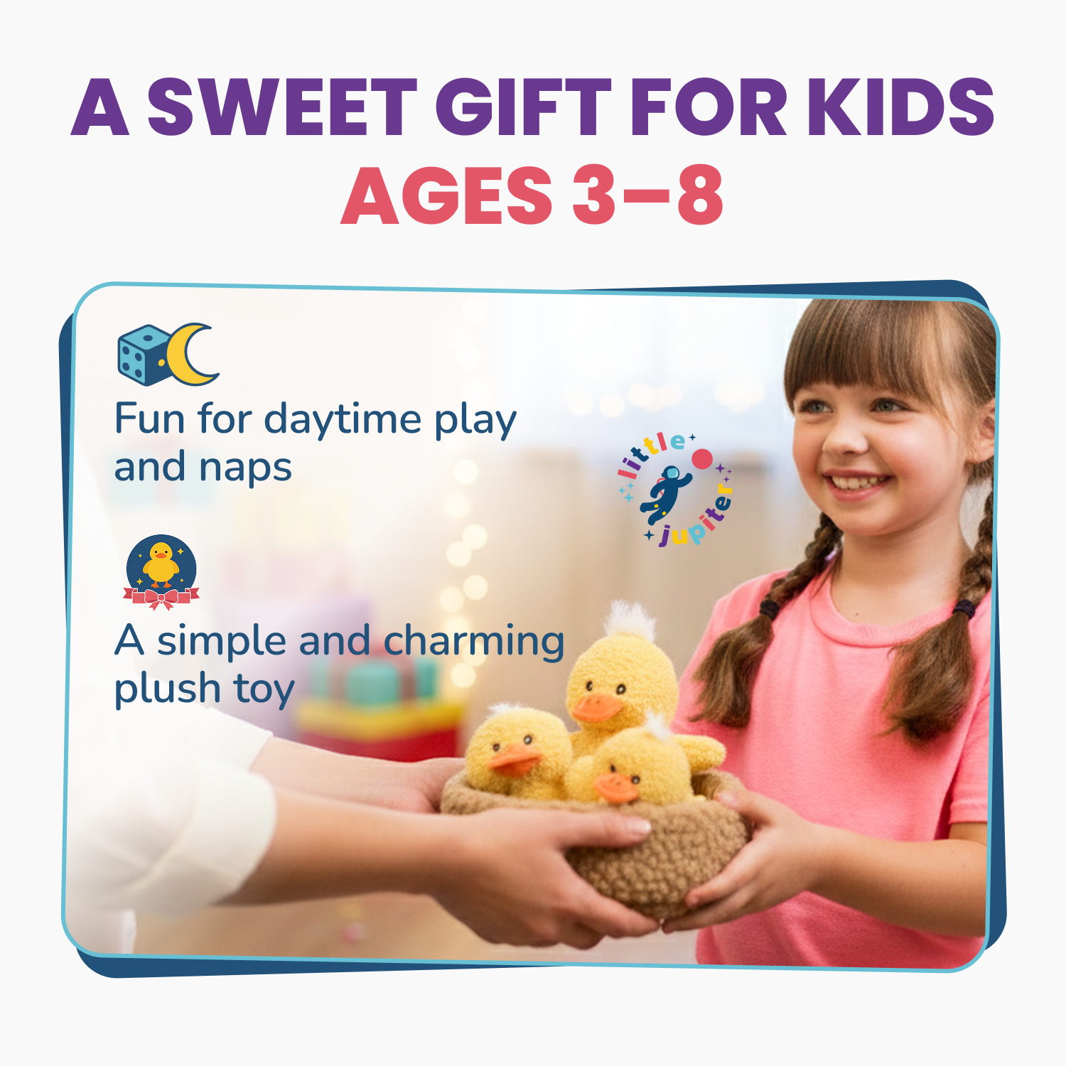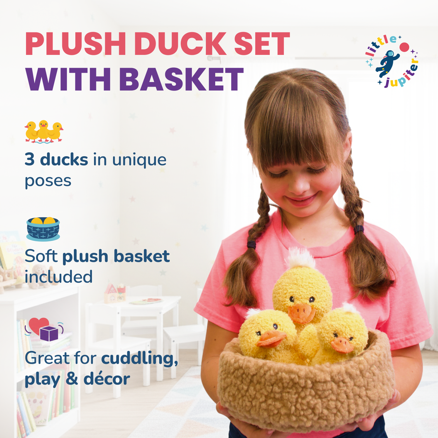 Looking for the cutest duck plushies for boys and girls? How about something for that birthday child? Need a birthday plushie? We understand, and deliver with the Little Jupiter 3 in 1 stuffed duck plush set. Features the cutest three little ducks and basket.